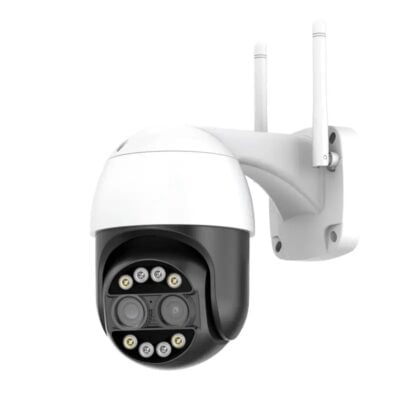 Cette caméra est équipée du système PTZ. Le système PTZ assure que la caméra à la capacité de se contrôler et de zoomer toute seule. Elle est également équipée d’un système infrarouge de vision nocturne pour rester efficace même de nuit.