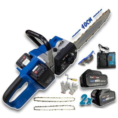 Kraft Shop vous propose une gamme de tronçonneuses sur batterie 36V avec guide de 25 centimètres de longueur (environ 10 pouces) ou de 40 centimètres de longueur (environ 16 pouces). Ces tronçonneuses sont alimentées à l’aide d’une batterie à lithium-ion rechargeable.