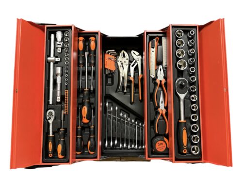 L’étagère à 5 tiroirs est livrée avec un ensembles d’outils compris dans le prix : douilles; cliquet, tournevis à chocs, pinces (pinces coupantes, pinces à mâchoire courbée, pinces à mâchoire allongée, pinces à sceller), marteau, …