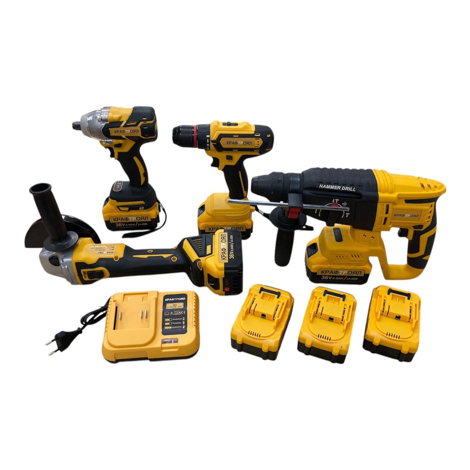 Meuleuse d’angle + Perforateur + Boulonneuse + Visseuse Perceuse Sans Fil Model 36V Kraft Royal