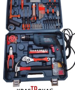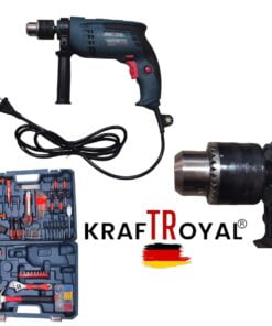 Perceuse Visseuse à percussion 1200W Kraft Royal. + Outils Puissance nominale : 1200W ; Tension d’alimentation nominale : 220 V ; Régime de ralenti : 0-3600 tr/min ; Régulation de vitesse ; Mandrin à dégagement rapide : 1,5-13 mm ; Capacité de forage: – En acier : 10mm ; – En Bois : 22mm ; – En Béton : 13mm ; Boîtier en aluminium ; Bobines de cuivre; Refroidissement rapide ; Changer le sens de rotation ; Bouton de verrouillage ; 3 modes de fonctionnement : perçage, perçage à percussion, burinage Avec de faibles vibrations pendant le fonctionnement et au ralenti Pression légère, pour un travail sans fatigue Protection anti-poussière intégrée Rotule sur le câble Fixation variable de l’incisive dans 12 positions sous différents angles Manche enduit Revêtement antidérapant doux sur la poignée principale et auxiliaire pour une prise en main sûre Grande mallette à outils Convient également aux gauchers