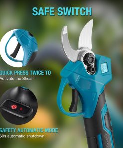 - 【Interrupteur de verrouillage intelligent, utilisation sûre】Ce sécateur électrique est équipé d’un interrupteur de verrouillage intelligent. Si le sécateur avec batterie n’est pas utilisé pendant 30 secondes, il passe en mode veille. Lorsque vous souhaitez l’utiliser Sécateur électrique professionnel sans fil, appuyez sur la gâchette deux fois de suite et il se réveillera du mode veille