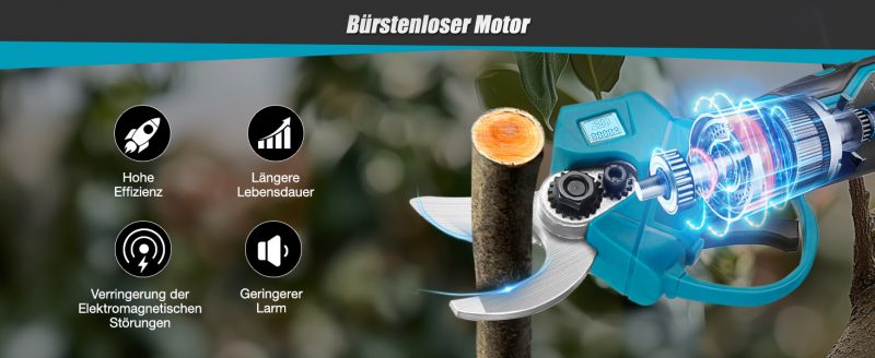 - 【600W moteur pour une taille efficace】 Sécateur de jardin électrique professionnel Équipé d’un moteur sans balai en cuivre pur d’une puissance de 600W. Ces sécateurs électriques montrent d’excellentes performances et leur puissance est considérablement augmentée. Le sécateur électrique sans fil est 2 à 3 fois plus efficace que le sécateur électrique conventionnel.